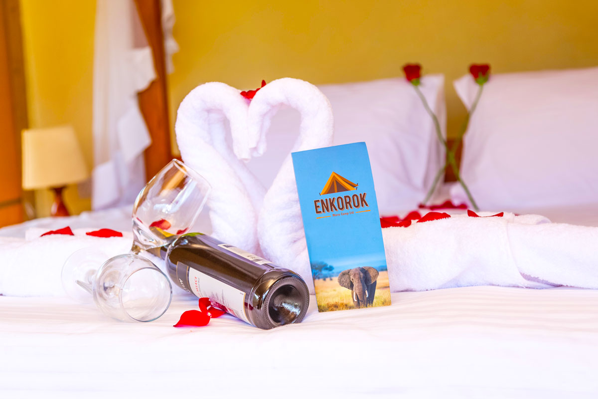 The Honeymoon suite is set up for couples wishing to enjoy their love in the Masai Mara. Here, you will enjoy the luxury of sleeping on a comfortable queen-size bed, privately suited just for you and your significant other. This en-suite tent come with a large and spacious washroom and bathroom. Plus, enjoy red wine on your first night with us.